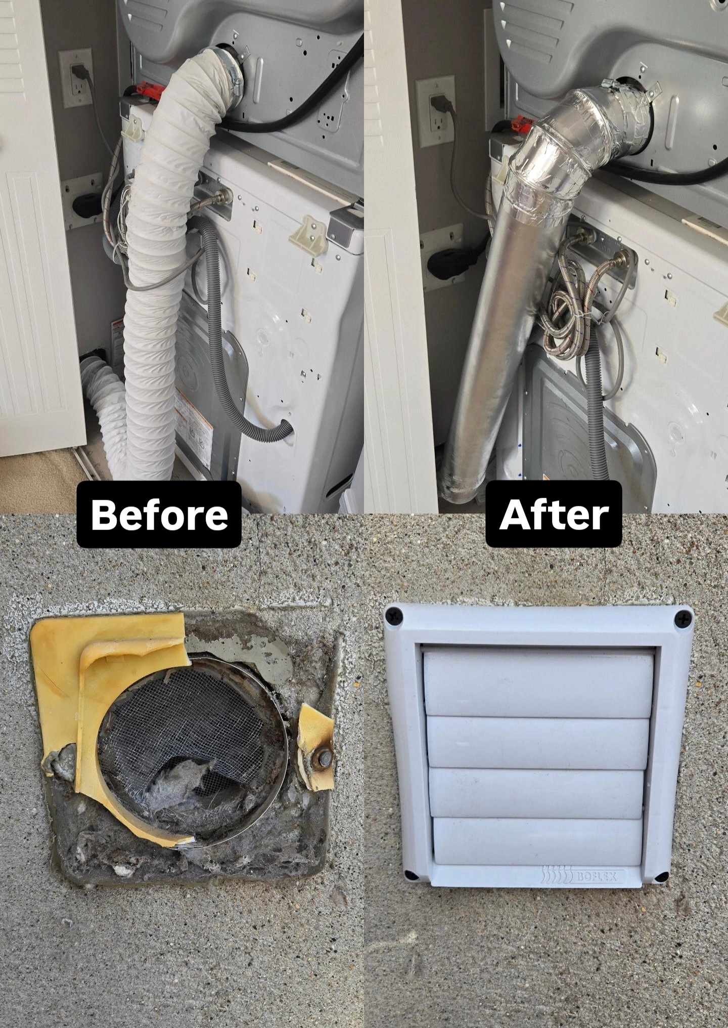 Dryer Duct Cleaning/New Dryer Vent Installations & Dryer Duct Upgrades